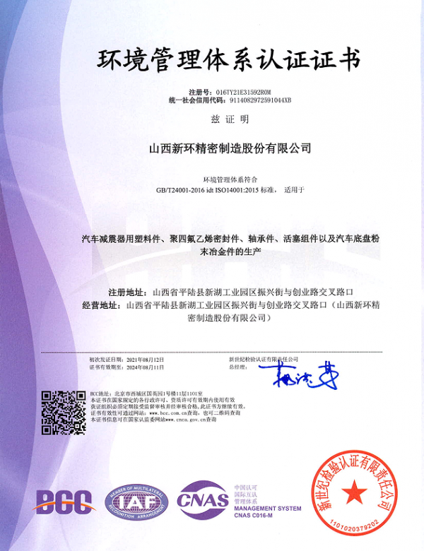 山西新環(huán)精密制造股份有限公司創(chuàng)建于1992年,是以研發(fā)、生產(chǎn)、銷售粉末冶金類、工程塑料類、橡膠制品類、氟塑類產(chǎn)品為主的高新技術(shù)企業(yè)。位于交通發(fā)達的山西省平陸縣城,距離三門峽市6 km,毗鄰隴海線,高鐵直達北京、上海、成都均為5小時左右,到達鄭州、西安皆為1小時,距離運城市機場35km。旗下子公司有:山西新環(huán)粉末冶金有限公司、山西新環(huán)科技有限公司、寧波新環(huán)氟塑料制品有限公司、寧波新環(huán)氟塑料制品有限公司軸業(yè)分公司、新勝達氟塑制品有限公司?,F(xiàn)有高、精、尖設備120余臺套,固定資產(chǎn)總額1.8億元,年銷售額2.6億元。